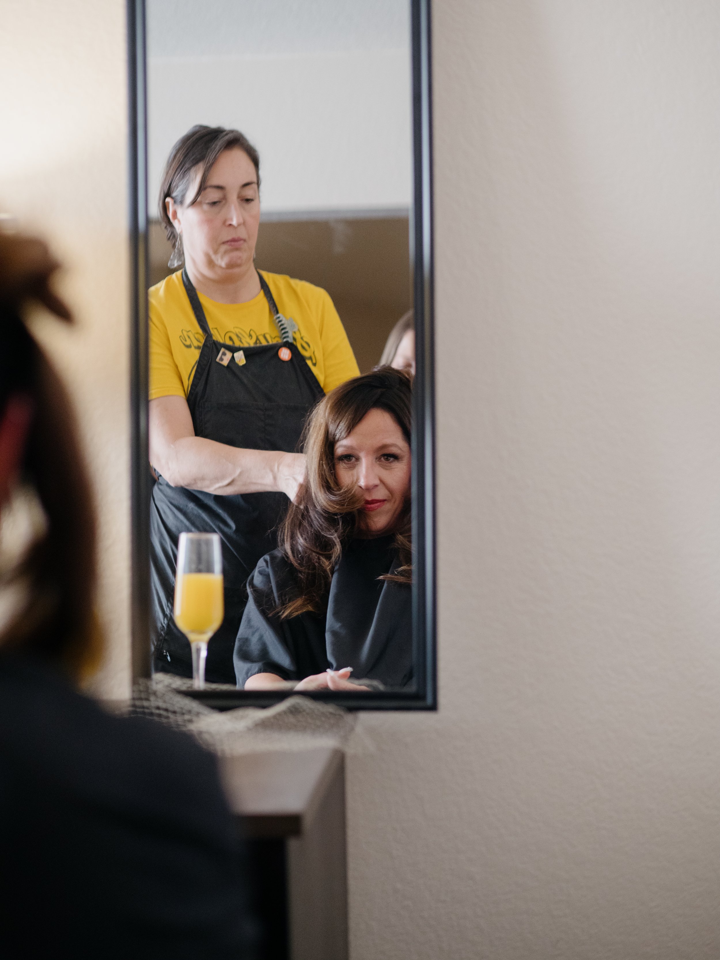 Alexis has this heart-shaped mirror she uses for every client's reveal. It sounds like a small thing, but it made each moment — every single one, from the niece to the mom to the bride — feel genuinely special. Like each person got their own little celebration. I loved watching it happen over and over.